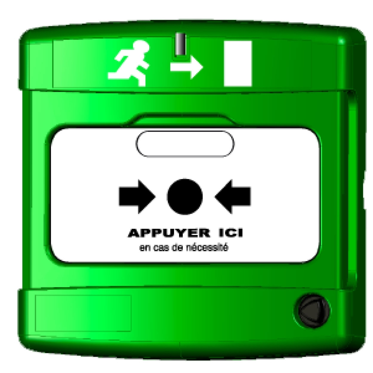 Boîtier bris de glace vert 1 contact à membrane déformable, avec clé de réarmement incluse.