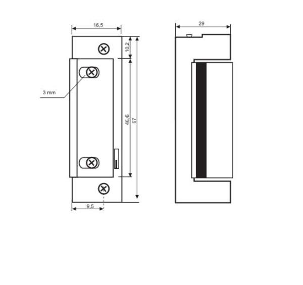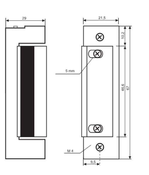 Gâche encastrée symétrique à émission avec décondamnation 8-12Vac/Vdc, compatible avec les têtières TGI24DE90 et TGI24SE