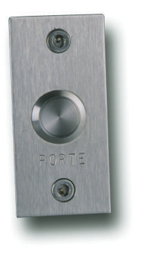 Plaque inox d'encastrement étroite pour bouton poussoir BPNONF et BPNONFLU, marquage « porte » - Diamêtre de perçage : l 38 x h 80 x p 2mm
