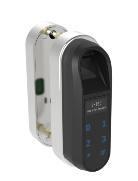 Bloc béquille à empreinte et code, poignée gauche, inox, entraxe 70mm